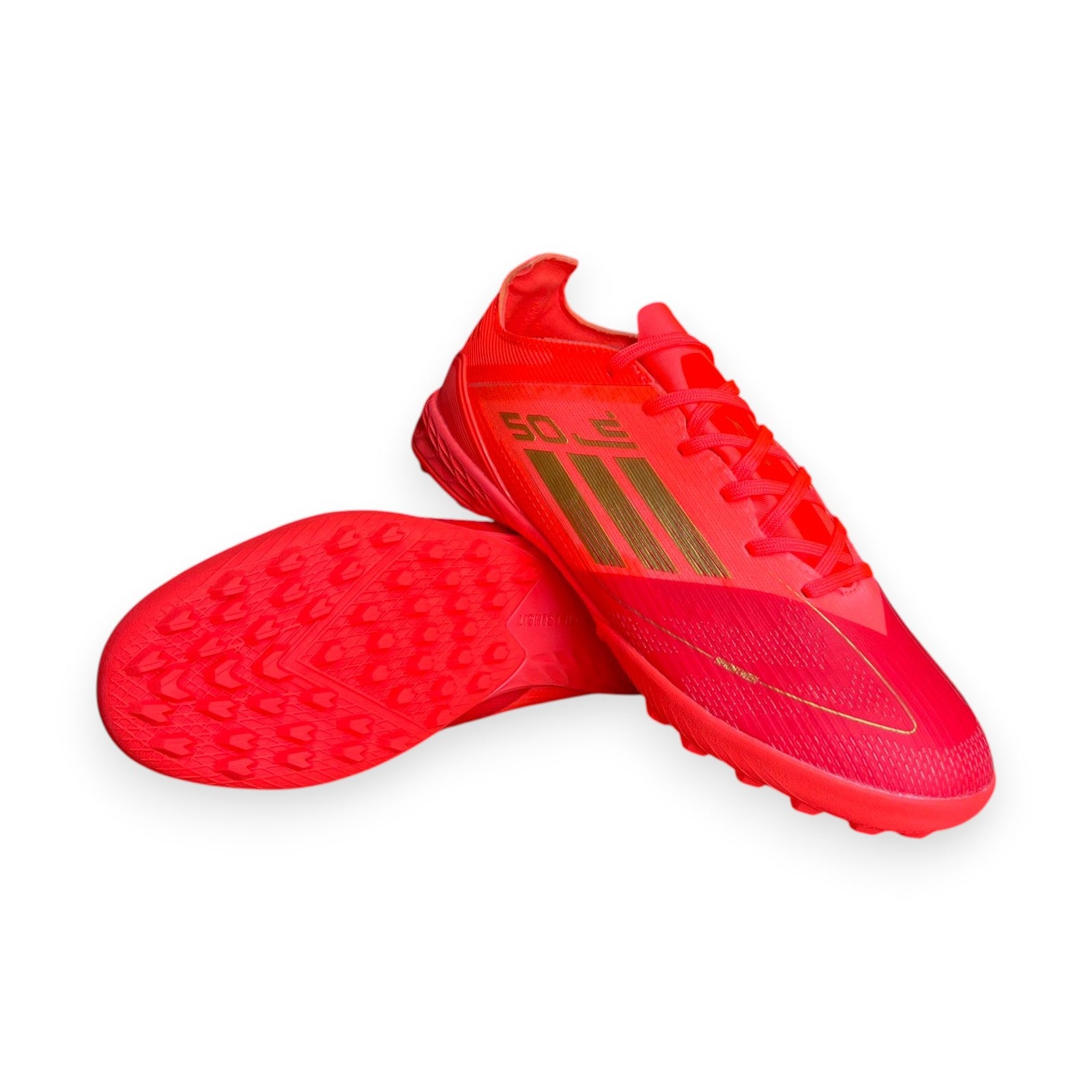 Inspiradas en la velocidad, legado y herencia de Mohamed Salah, estas F50 Elite de edición especial “Two Horizons” combinan rendimiento pro y diseño culturalmente significativo. Incorporan el nombre F50 escrito en árabe —primera vez en la historia de la línea— como homenaje a los futbolistas árabes y su impacto global.