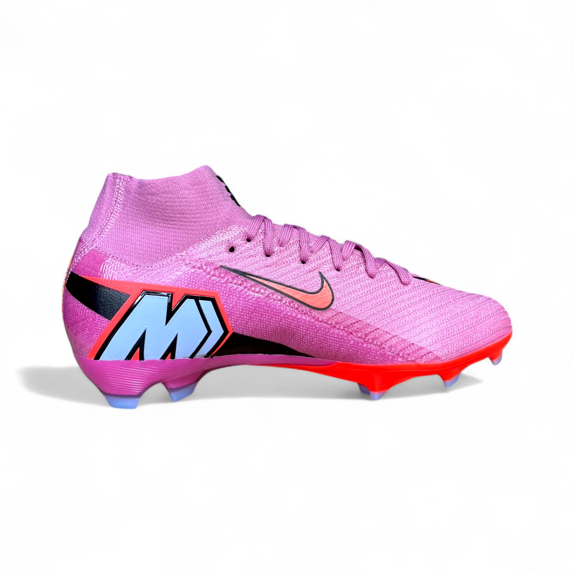 Con un upper de alta tecnología en Flyknit y Gripknit, este modelo garantiza un toque limpio incluso a máxima velocidad. Y por supuesto, su combinación rosa intensa, rojo brillante y negro asegura que todos te vean… justo antes de que los dejes atrás.