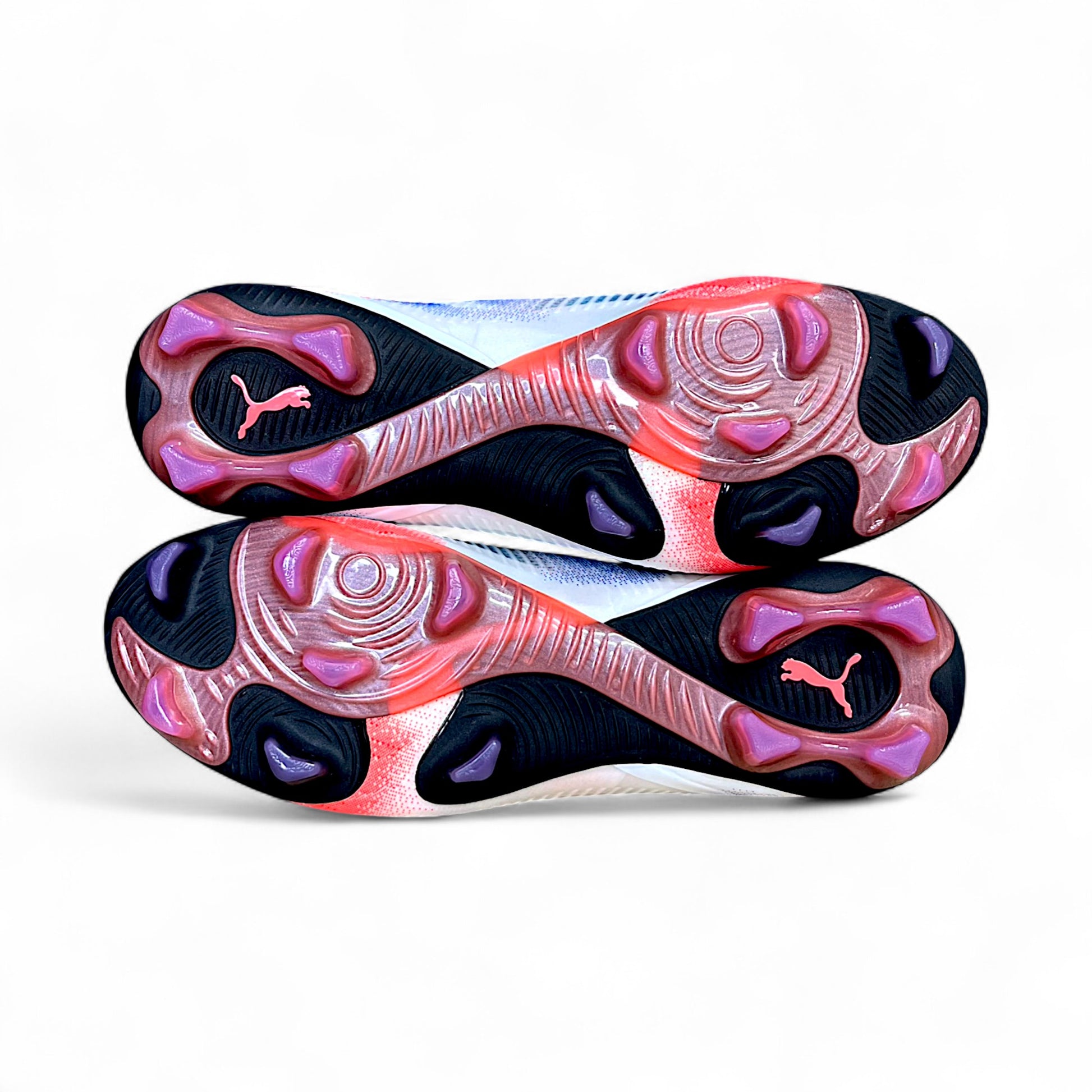 Las Puma Future Ultimate combinan innovación con libertad total de movimiento. Este modelo, con su mezcla de blanco, azul y rosa, mezcla diseño moderno con tecnologías de elite para ofrecerte control, ajuste y explosividad.